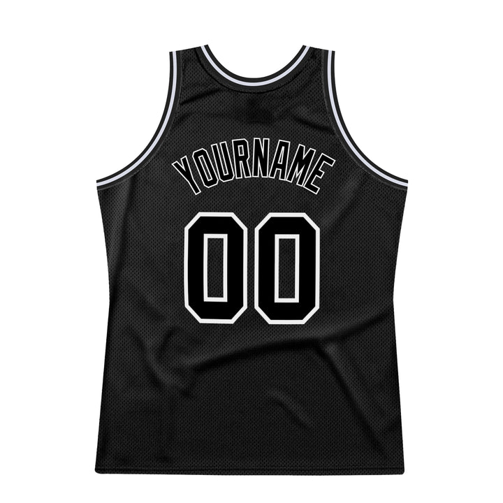 Custom Black Black-White Authentic Throwback Basketball Jersey