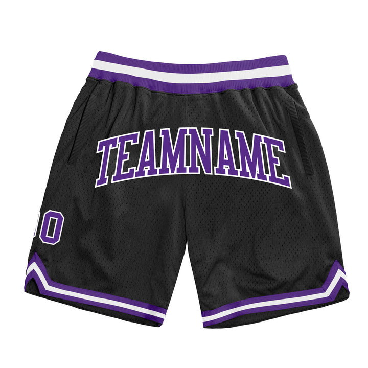 Custom Black Purple-White Authentic Throwback Basketball Shorts