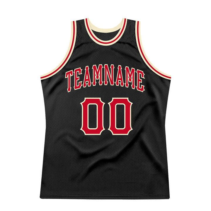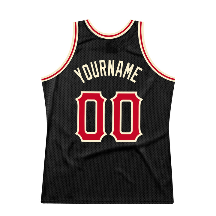 Custom Black Red-Cream Authentic Throwback Basketball Jersey