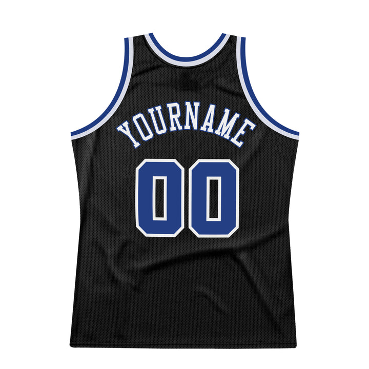 Custom Black Royal-White Authentic Throwback Basketball Jersey