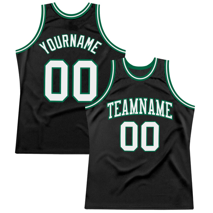 Custom Black White-Kelly Green Authentic Throwback Basketball Jersey
