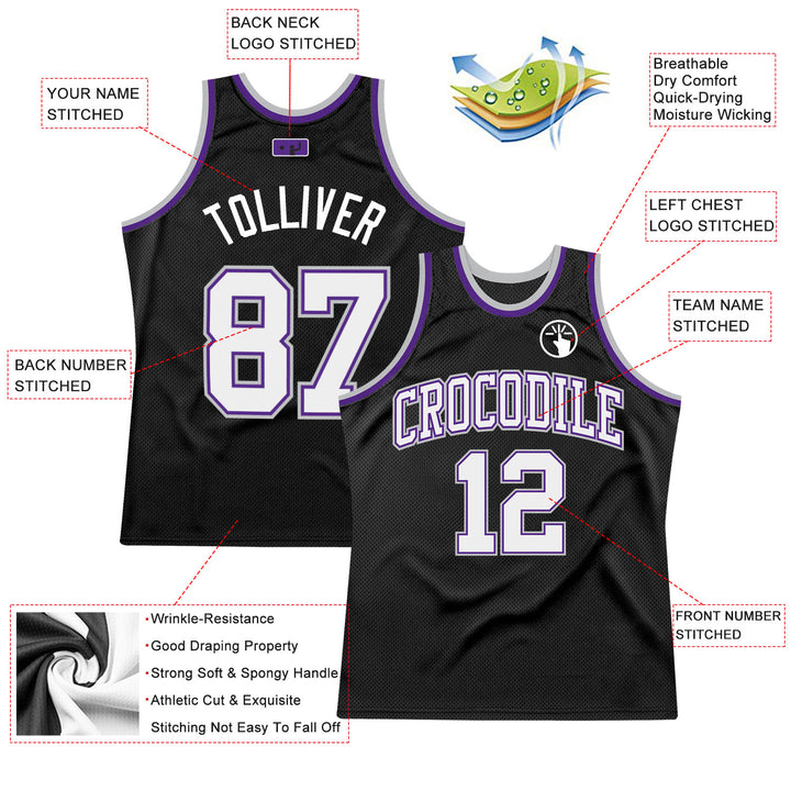 Custom Black White Purple-Gray Authentic Throwback Basketball Jersey