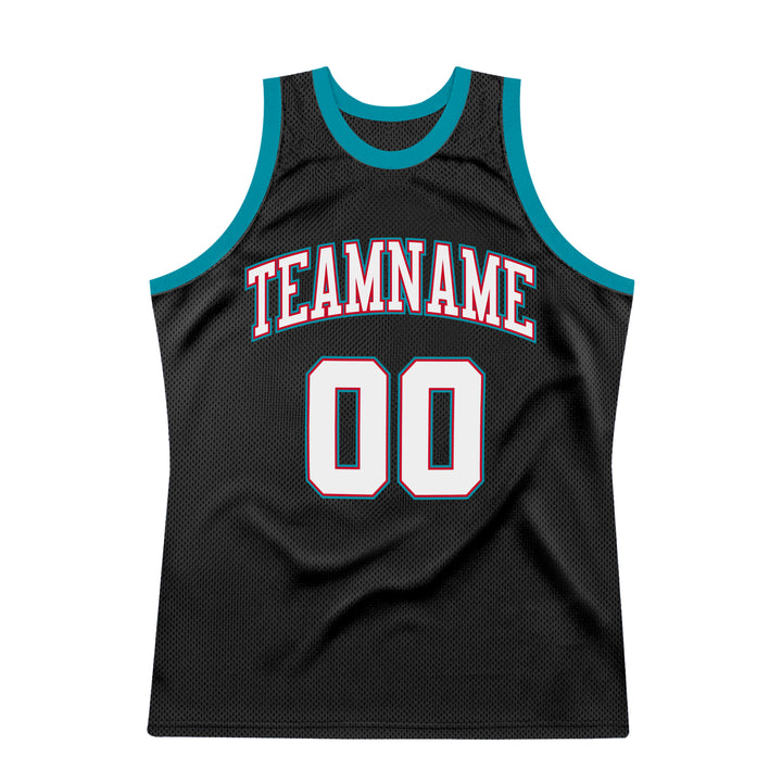 Custom Black White-Teal Authentic Throwback Basketball Jersey