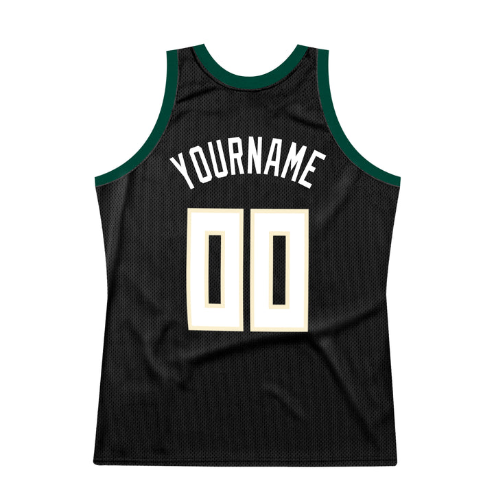 Custom Black White-Hunter Green Authentic Throwback Basketball Jersey
