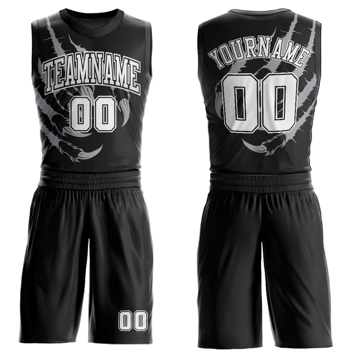 Custom Black White Animals Claws Round Neck Sublimation Basketball Suit Jersey