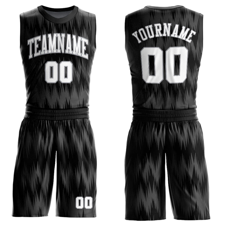 Custom Black White-Light Gray Round Neck Sublimation Basketball Suit Jersey