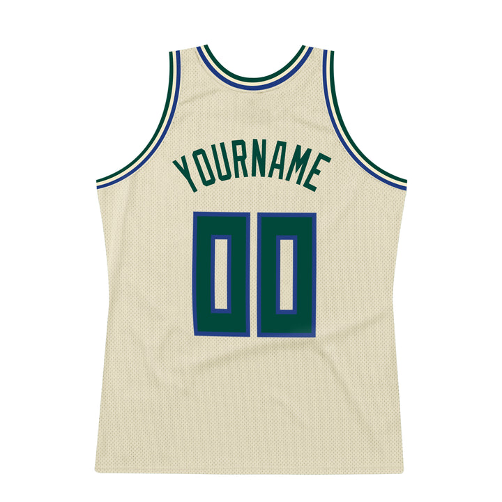 Custom Cream Hunter Green-Royal Authentic Throwback Basketball Jersey
