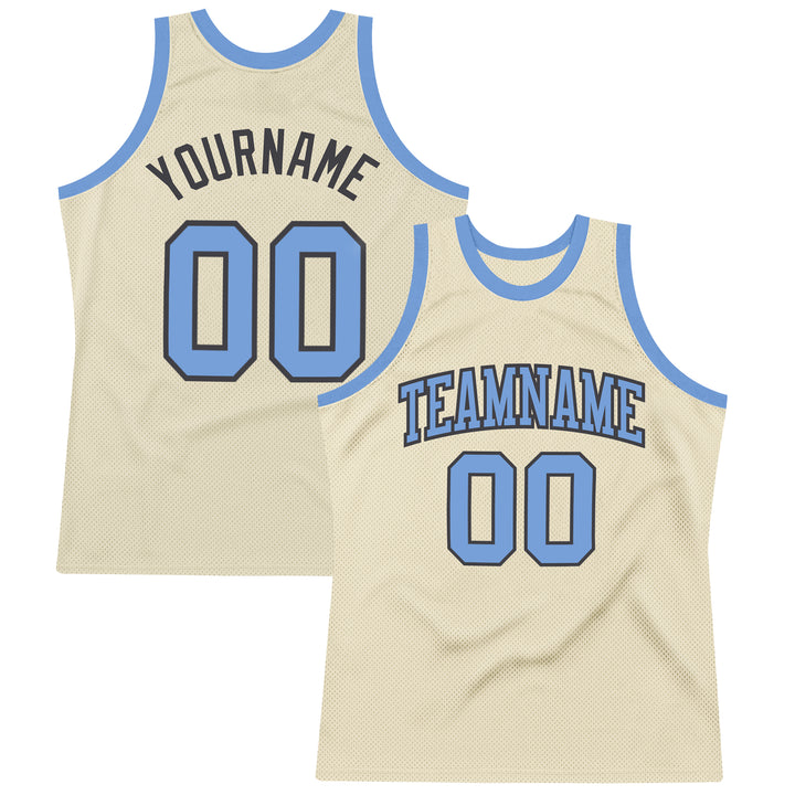 Custom Cream Light Blue-Steel Gray Authentic Throwback Basketball Jersey
