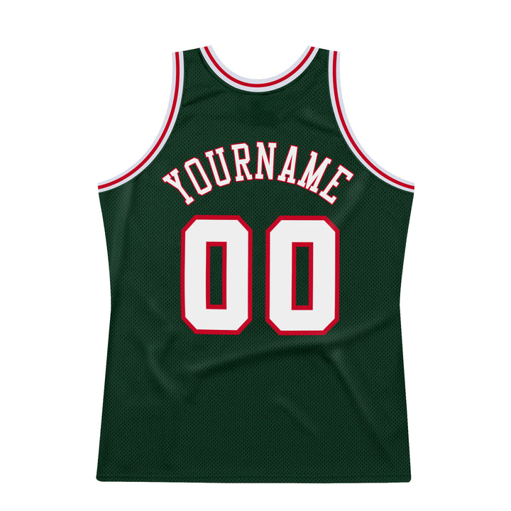 Custom Hunter Green White-Red Authentic Throwback Basketball Jersey