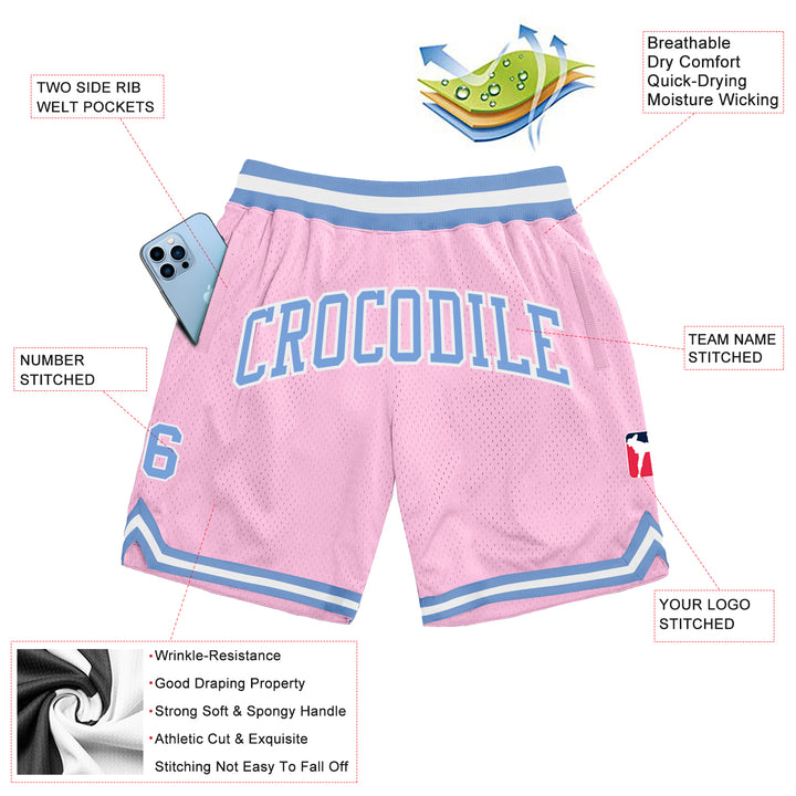 Custom Light Pink Light Blue-White Authentic Throwback Basketball Shorts