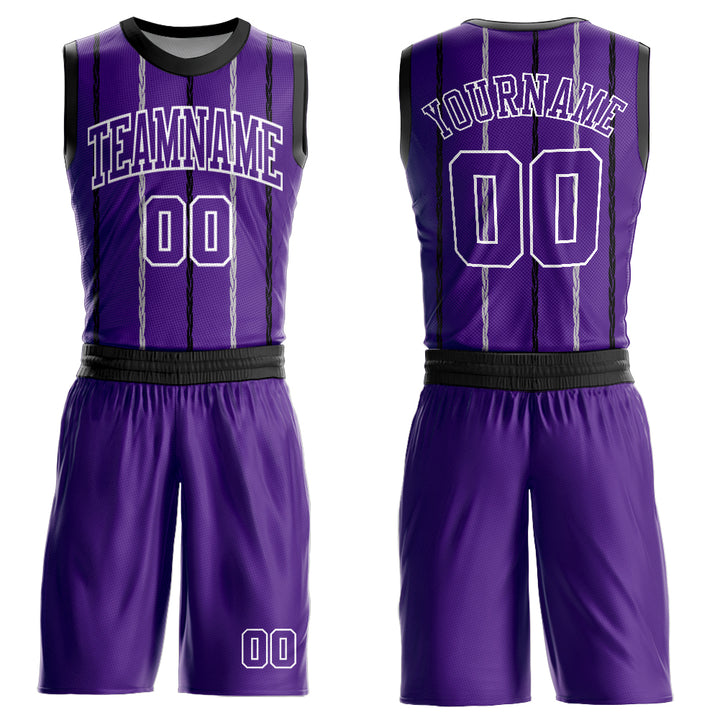 Custom Purple Black-White Round Neck Sublimation Basketball Suit Jersey