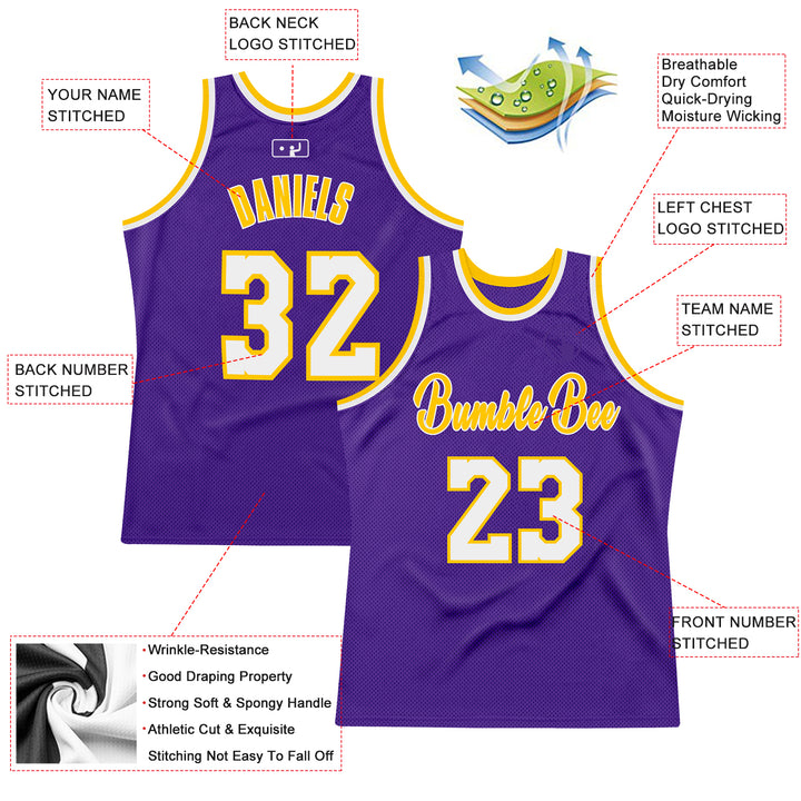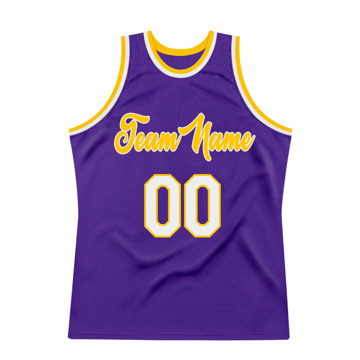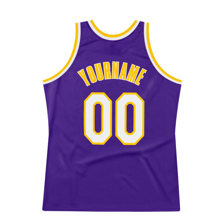 Custom Purple White-Gold Authentic Throwback Basketball Jersey