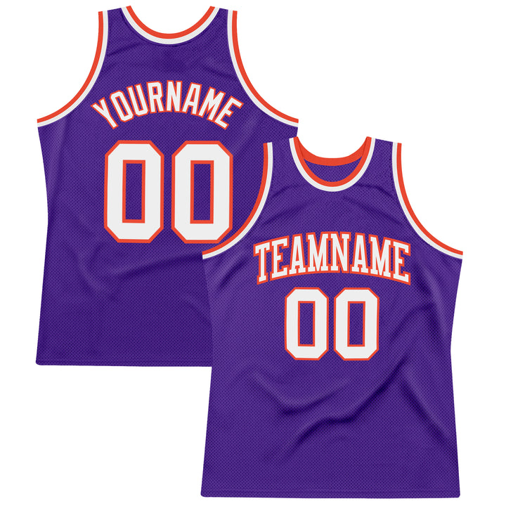 Custom Purple White-Orange Authentic Throwback Basketball Jersey