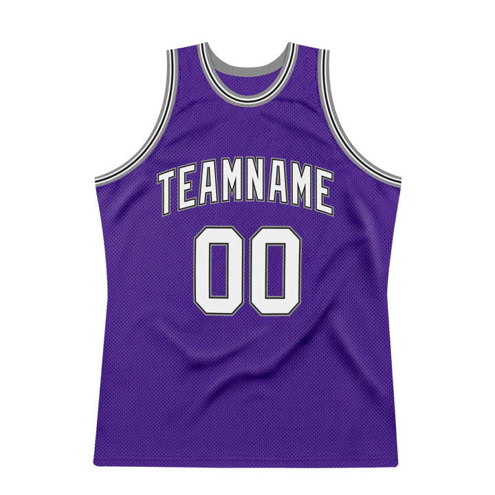 Custom Purple White-Gray Authentic Throwback Basketball Jersey