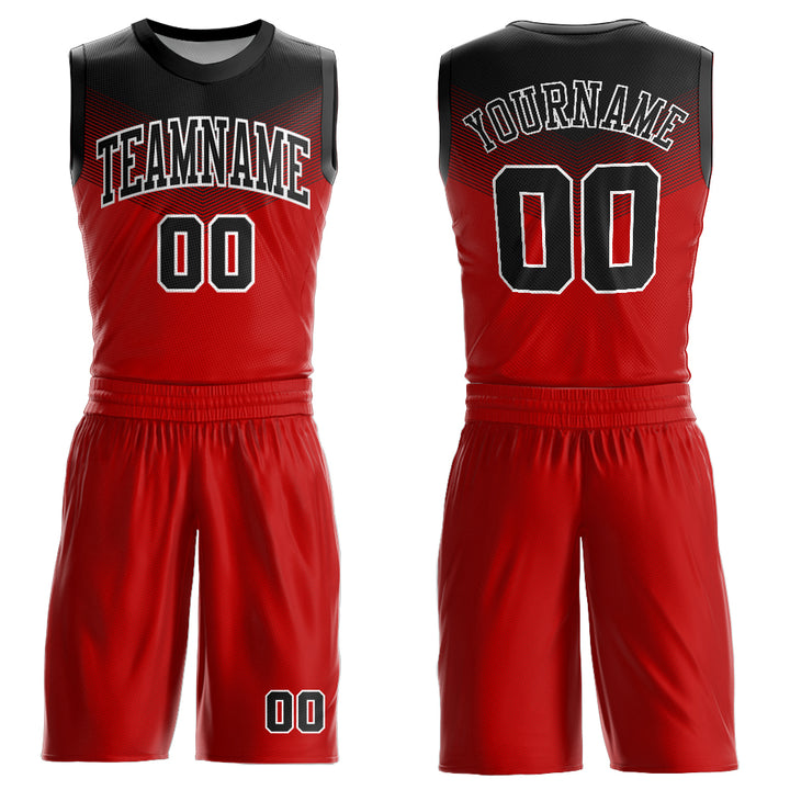 Custom Red Black-White Round Neck Sublimation Basketball Suit Jersey