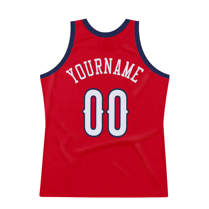 Custom Red White-Navy Authentic Throwback Basketball Jersey
