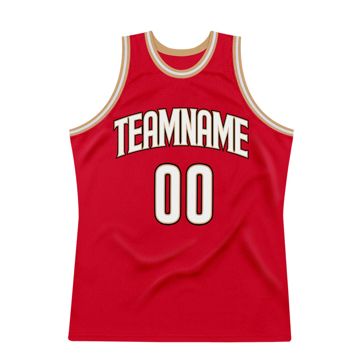 Custom Red White-Old Gold Authentic Throwback Basketball Jersey
