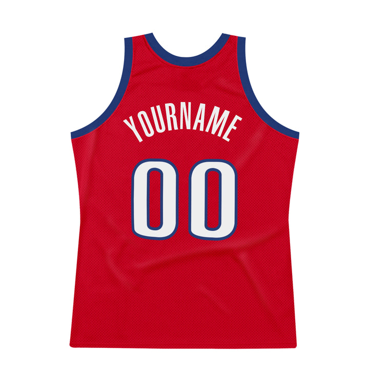 Custom Red White-Royal Authentic Throwback Basketball Jersey