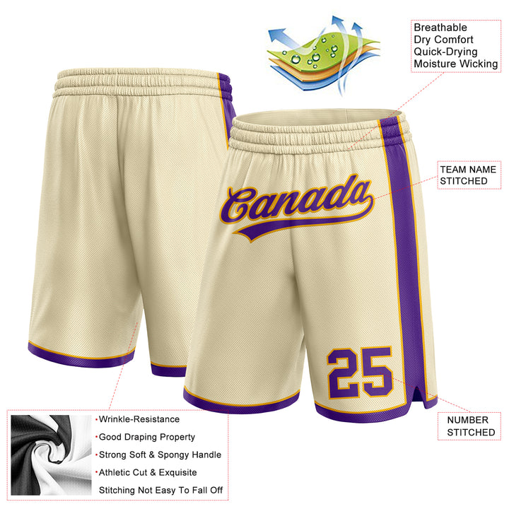 Custom Cream Purple-Gold Authentic Basketball Shorts