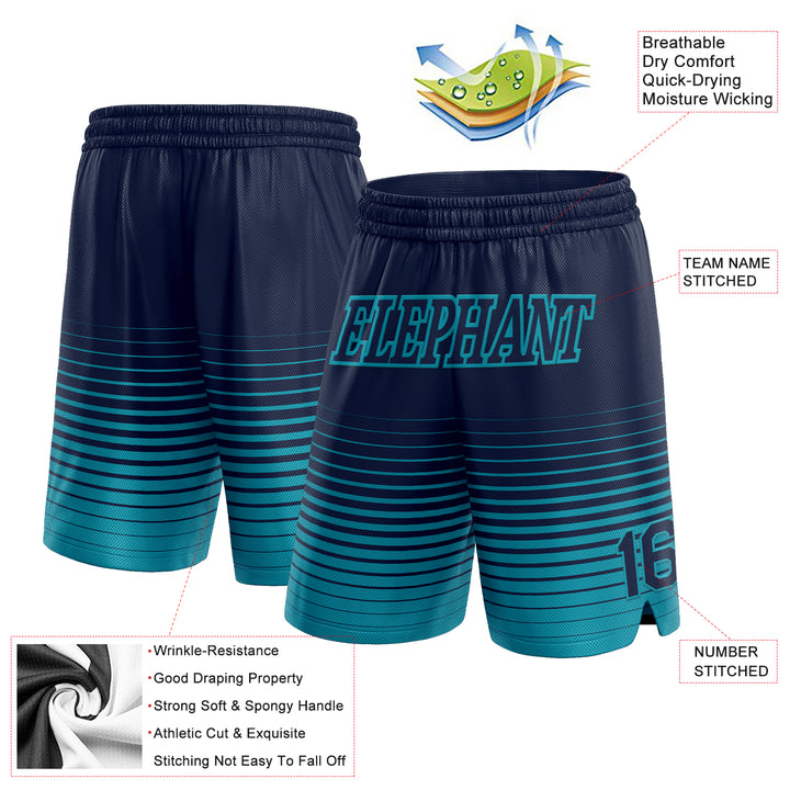 Custom Navy Teal Pinstripe Fade Fashion Authentic Basketball Shorts