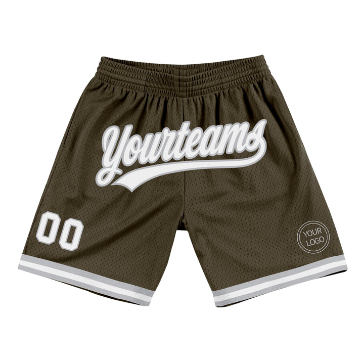 Custom Olive White-Gray Authentic Throwback Salute To Service Basketball Shorts