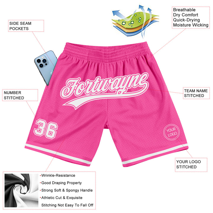 Custom Pink White Authentic Throwback Basketball Shorts