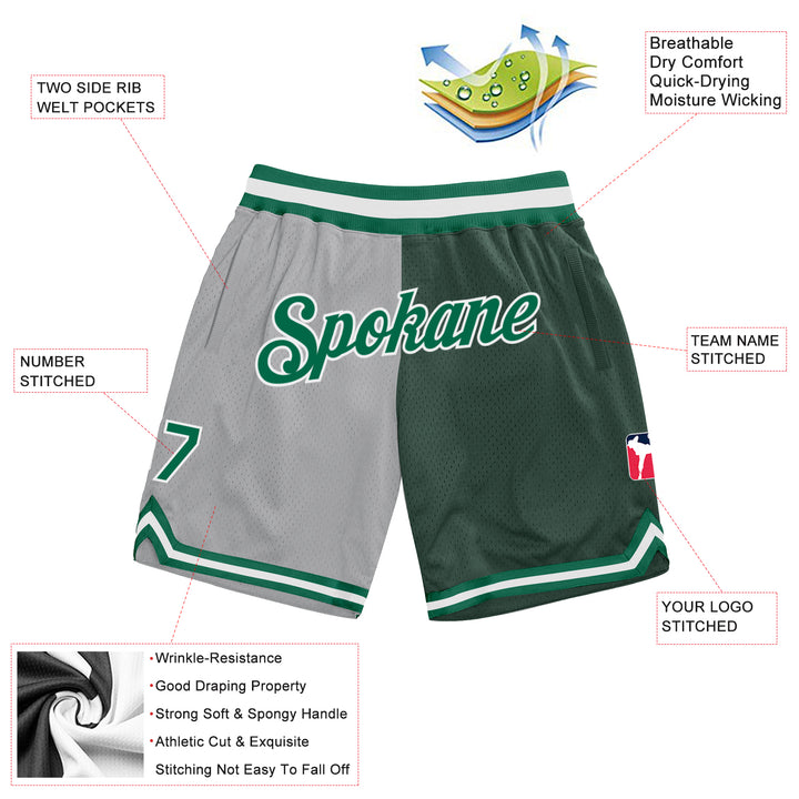 Custom Gray Kelly Green-Hunter Green Authentic Throwback Split Fashion Basketball Shorts