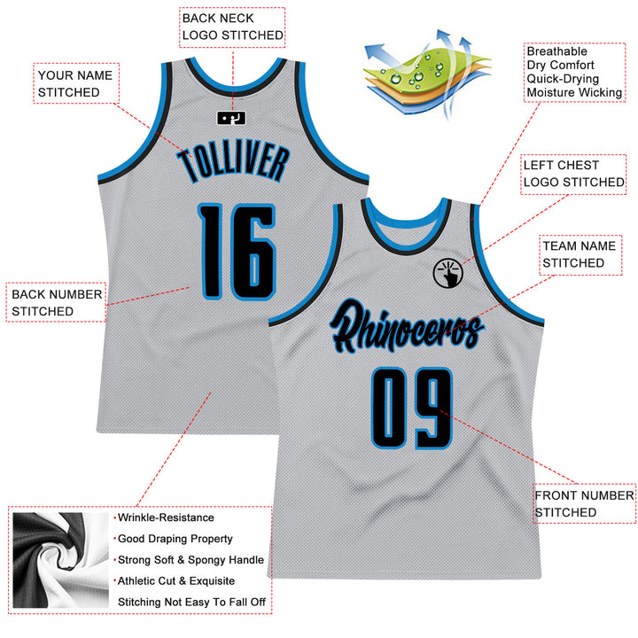 Custom Gray Navy-Blue Authentic Throwback Basketball Jersey