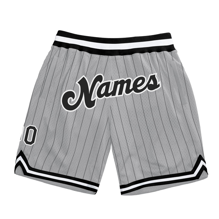 Custom Gray Black Pinstripe Black-White Authentic Basketball Shorts