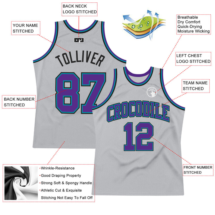 Custom Gray Purple Teal-Black Authentic Throwback Basketball Jersey