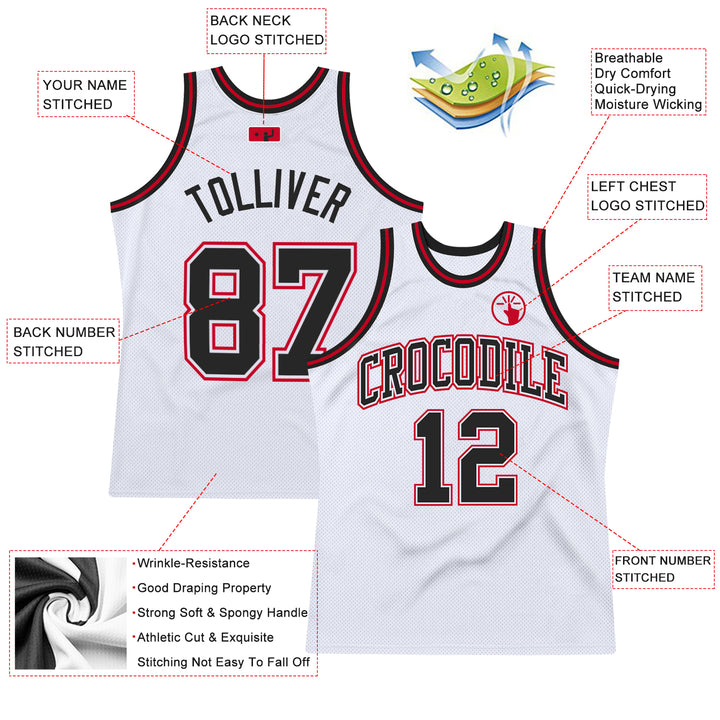 Custom White Black-Red Authentic Throwback Basketball Jersey