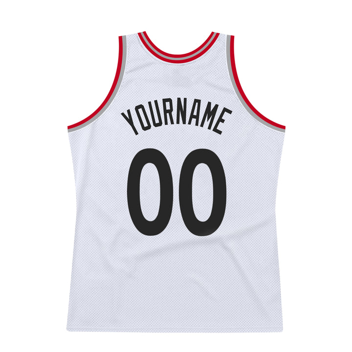 Custom White Black-Red Authentic Throwback Basketball Jersey