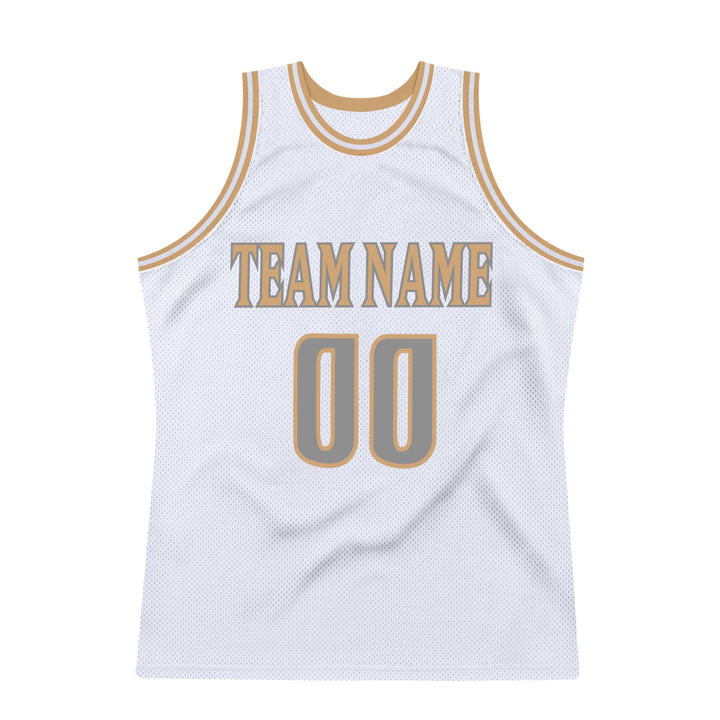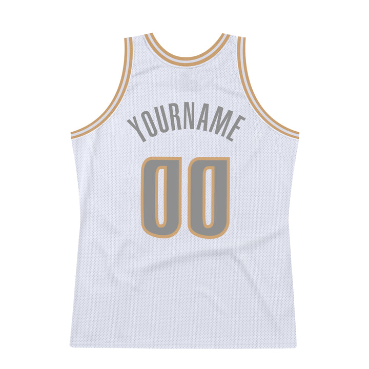 Custom White Steel Gray-Old Gold Authentic Throwback Basketball Jersey