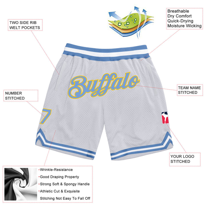 Custom White Light Blue-Gold Authentic Throwback Basketball Shorts