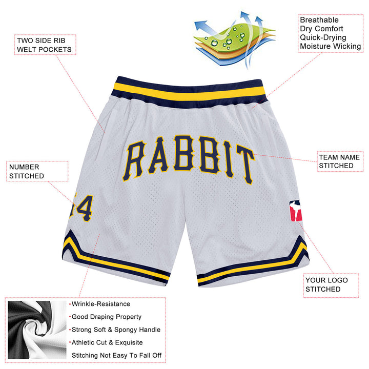Custom White Navy-Gold Authentic Throwback Basketball Shorts