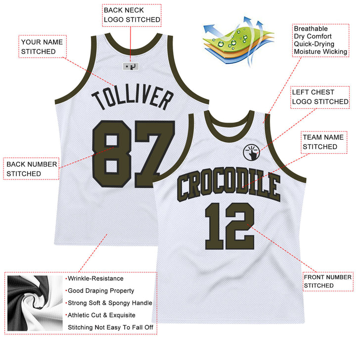 Custom White Olive-Black Authentic Throwback Basketball Jersey