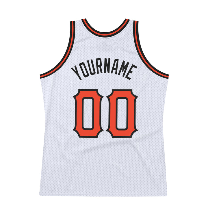 Custom White Orange-Black Authentic Throwback Basketball Jersey