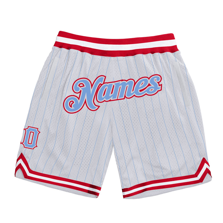 Custom White Light Blue Pinstripe Light Blue-Red Authentic Basketball Shorts