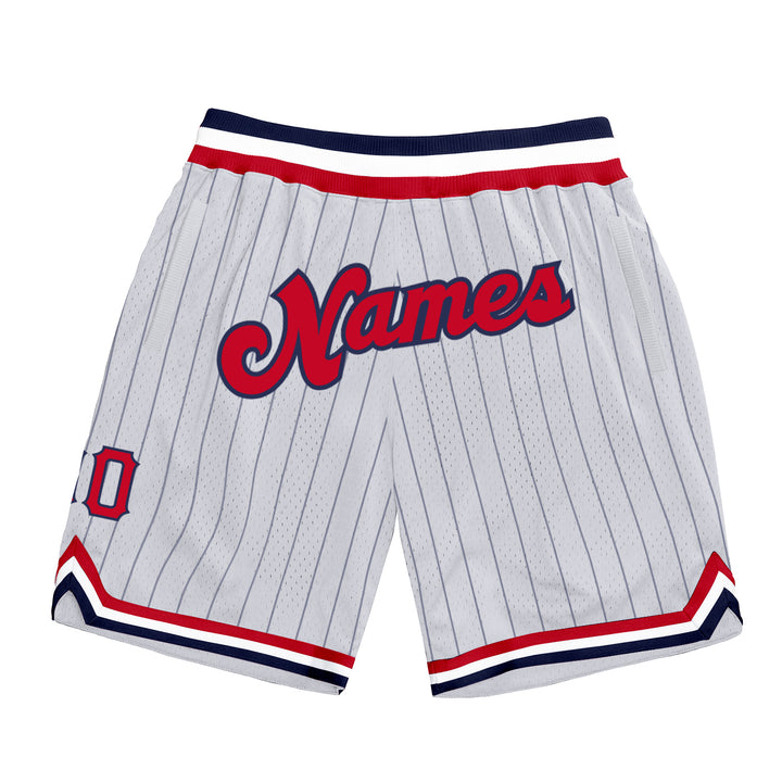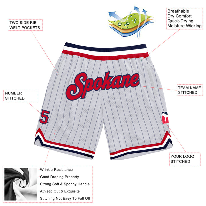 Custom White Navy Pinstripe Red-Navy Authentic Basketball Shorts