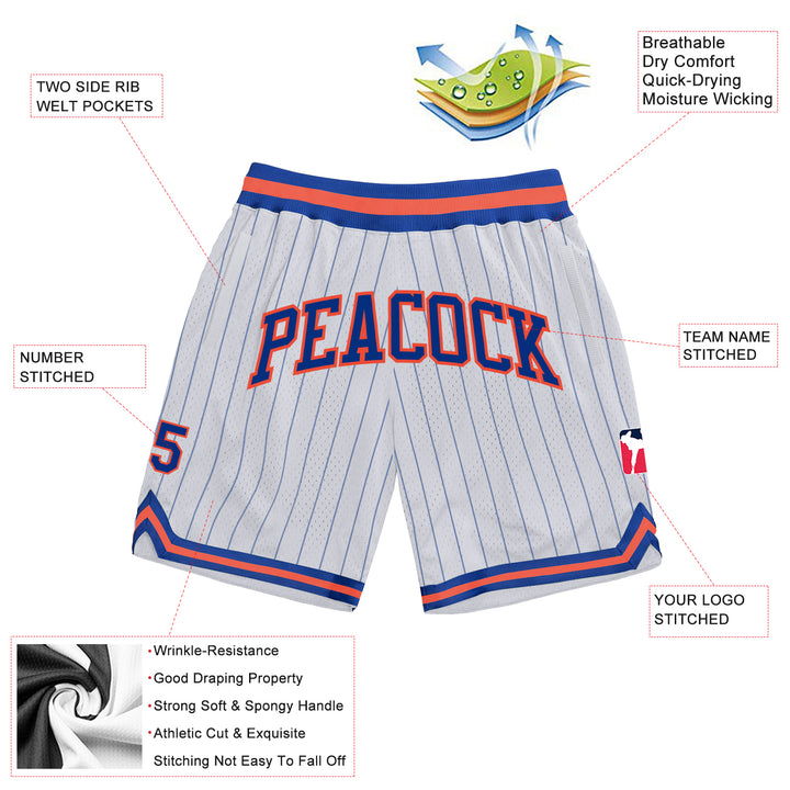 Custom White Royal Pinstripe Royal-Orange Authentic Basketball Shorts