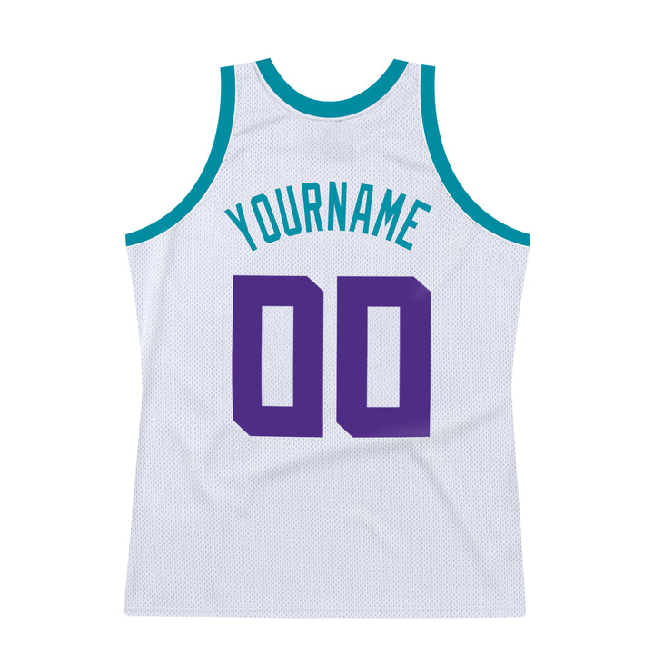 Custom White Purple-Teal Authentic Throwback Basketball Jersey