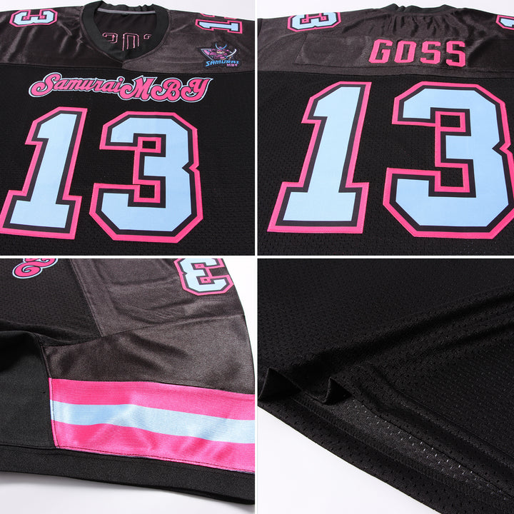 Custom Black Light Blue-Pink Mesh Authentic Football Jersey