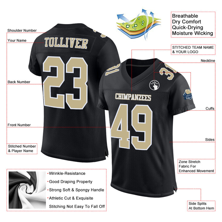 Custom Black Vegas Gold-White Mesh Authentic Football Jersey