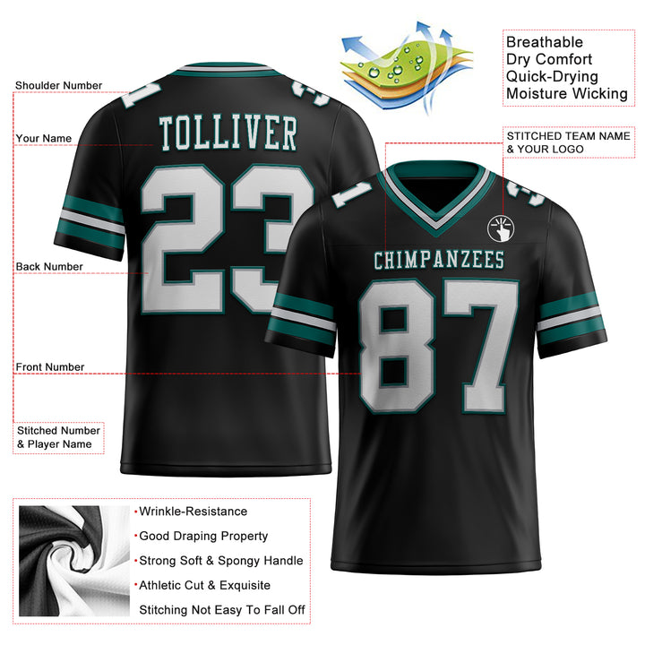 Custom Black White Gray-Midnight Green Authentic Football Jersey