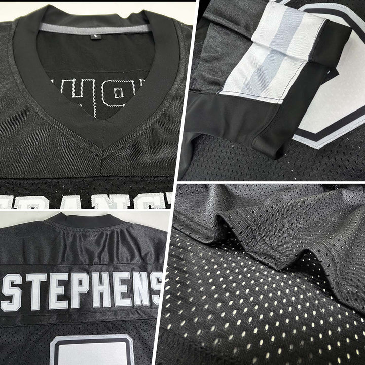 Custom Black White-Silver Mesh Authentic Football Jersey
