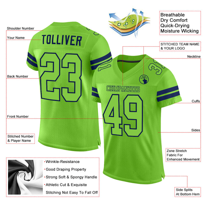 Custom Neon Green Neon Green-Navy Mesh Authentic Football Jersey