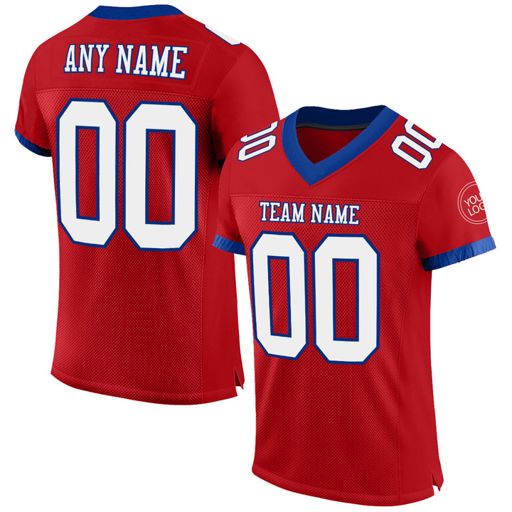 Custom Red White-Royal Mesh Authentic Football Jersey