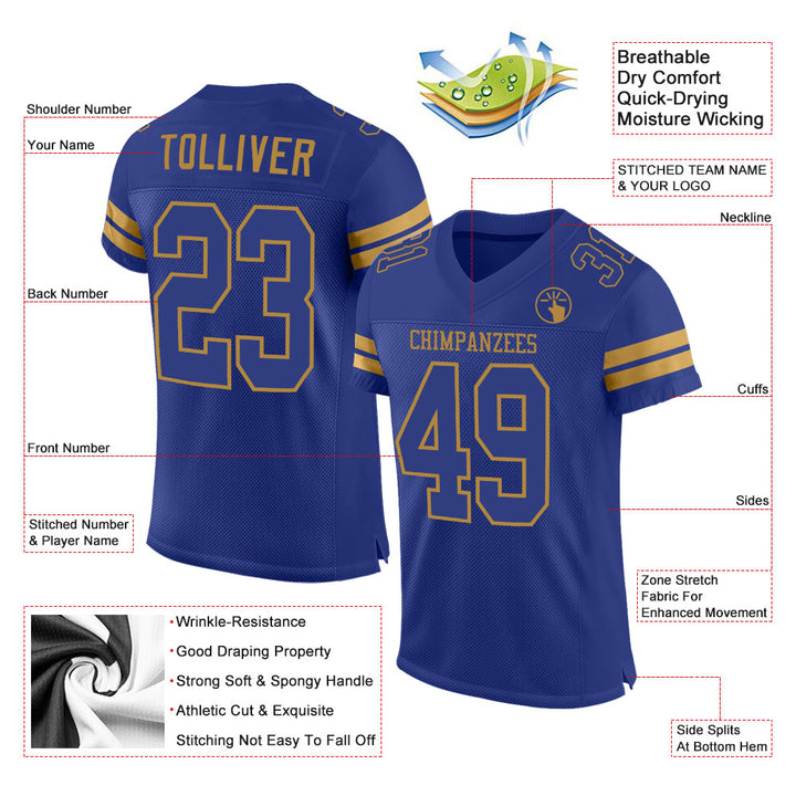 Custom Royal Royal-Old Gold Mesh Authentic Football Jersey