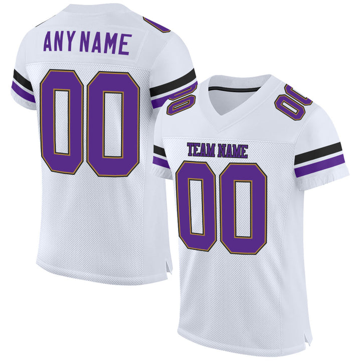 Custom White Purple-Old Gold Mesh Authentic Football Jersey