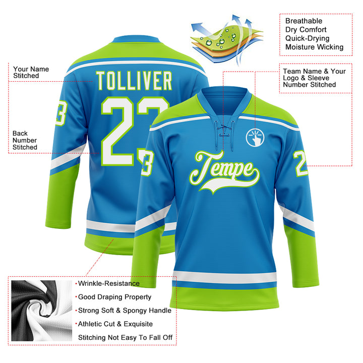 Custom Blue White-Neon Green Hockey Lace Neck Jersey